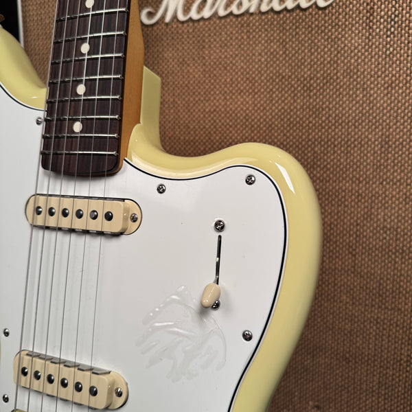 Hey Gang! What else can one say? It will do it all! Hot off the presses this 2024 Player II Jaguar in Hialeah Finish is the cream of the crop. They don't get much newer than this and as "unplayed" as this. Plastic still on the pick guard and under some of the screws. It's setup and ready to go. Gig-Bag included.