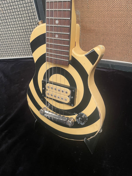 This one’s for the little rocker, big rocker, old rocker, tiny rocker and all rockers in between out there! Great for stage, studio and all garages nationwide... Here Is a limited edition, Zakk Wylde Signature PeeWee Bullseye Les Paul. This guitar has an old DiMarzio pickup installed, Schaller tuners ands a wrap around tailpiece. This is in Rock & Roll Condition..!!! The sale will include a funky gigbag, It's a very cool ride! Great for the young musician & all players in between. It does smoke!!! Say Half stack?