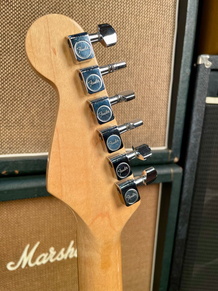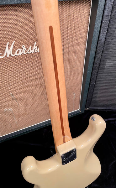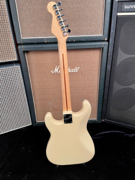 This is at the tale end of the Original Dan Smith Stratocasters before changing to an inferior tremolo and 2 knob model design with input jack on the pickguard. These models are becoming more and more rare and are hard to find in Olympic white and as clean as this particular one. This finish has a cool and rare feature that includes a rare locking nut design. The body is in very good shape. The Pickups and electronics are all original and work and sound great! The maple neck and fingerboard are very comfortable and easy to play. Every note rings loud and clear. This is a great Strat and it will not let its next owner down!