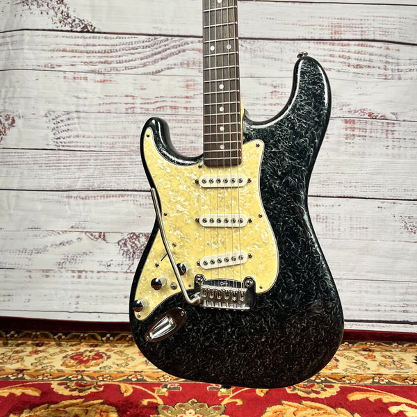 Sealed-back tuning keys with an 18:1 ratio add a touch of precision, guaranteeing that your tuning remains steadfast. This is the only left handed version of this model. The 1994 G&L Lefty S-500 in Black Swirl is a rare gem ready to make a bold statement in your musical endeavors. The finish on this guitar is lifting a bit near the base of the neck.