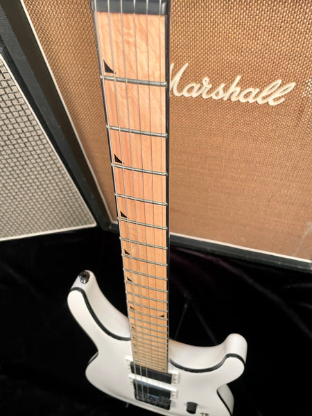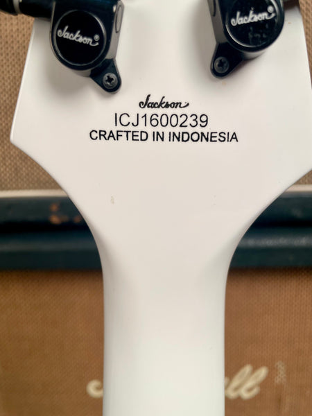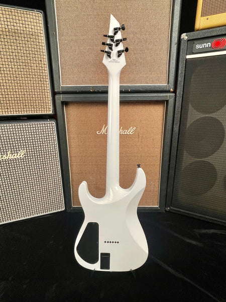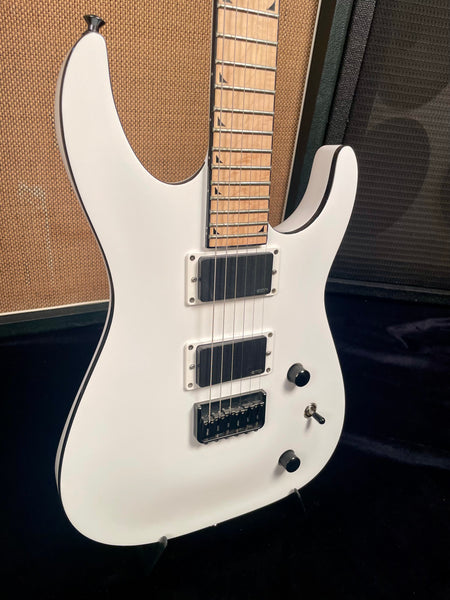 This Jackson SLATHXMG3-6 in Snow White is a high-performance solid body electric guitar built for speed and precision. Featuring a sleek arched-top mahogany body and a thru-body maple neck with graphite reinforcement, it offers incredible sustain and stability. The bound laurel fingerboard has 24 jumbo frets and a 12"-16" compound radius for effortless playability. Powered by a pair of active EMG 81/85 humbuckers, this guitar delivers aggressive, articulate tone perfect for metal and hard rock players. Other features include a TonePros adjustable bridge with string-through-body design, Jackson sealed die-cast tuners, and black hardware. This guitar is in Good condition with moderate cosmetic wear and signs of use, but plays well with no major functional issues. Whether you're upgrading your rig or seeking a reliable stage-ready axe, the SLATHXMG3-6 offers pro-level performance at a great value