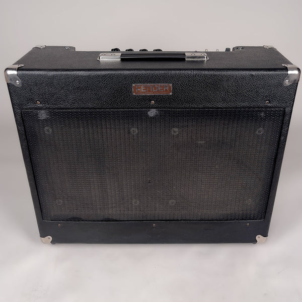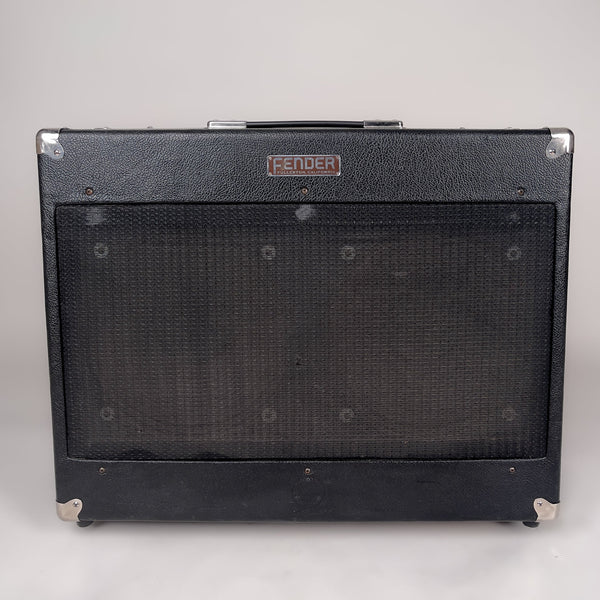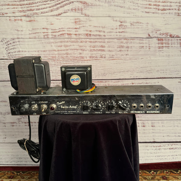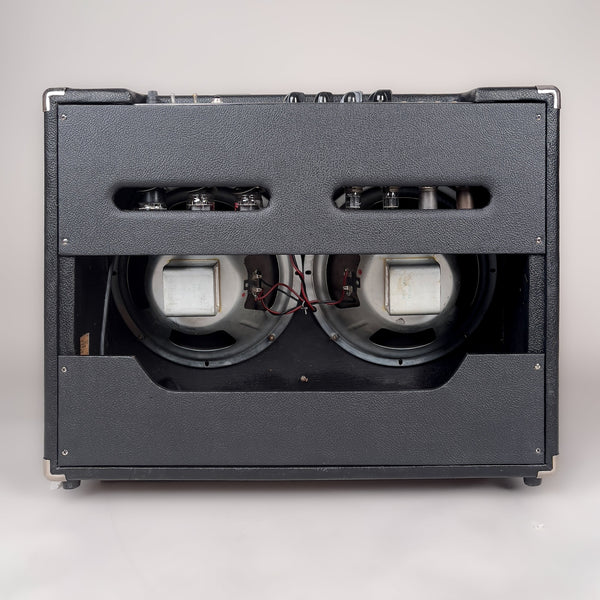 Hey Gang, Just in! Everyone knows the tone that these bad boys out. Recovered in the late 60's early 70's with black levant, that was really popular at the time. A one owner amp. Fully serviced by the great Steve L. in Fallbrook, Ca. The output transformer is a Mojo tone. Which give it a bit of a boost. Fender was in a transitional phase during the 5D8 and 5C8 circuit layout which is telling on the chassis. The preamp section is the 5D8 layout and the power section is the previous 5C8 circuit. Interesting amp that sounds awesome...!! CTS 1972 speakers. This amp is exceptional and the tone is second to none.