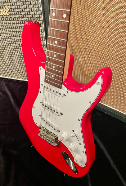This is a Harley Benton ST-62MN guitar in excellent condition. White Genuine Fender knobs and pickup covers. Stainless Steel saddles. Original parts are included. Comes with gig bag.
