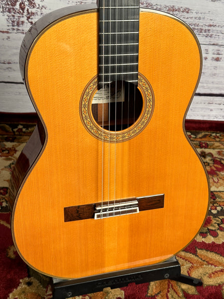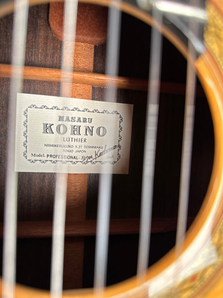 Hey Gang! Another beauty...! Super Rare...! A 1991 Masaru Kohno "Professional-J" Classical. Man, if you're a classical player this is it. This guitar is in excellent condition. One owner with original hardshell case. The scale is 650mm. The nut width is 52mm. If you are a collector, you will not find a nicer one. If you are a player you will not find one the sounds like this. Spruce top with CSA Rosewood back and sides. CSA rosewood has a more ornate pattern and bit better feast for the eyes. Tough for me to tell the difference. Darn near zero playing time on the guitar. It's like a time capsule piece. Hand made by the master himself. One of the greatest and most classical guitar builder of the 20th century. It has the great Kohno tone. Woody, clear and deep. Tones at a concert level... You will not be dissatisfied.