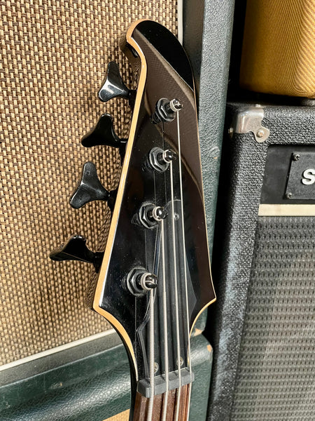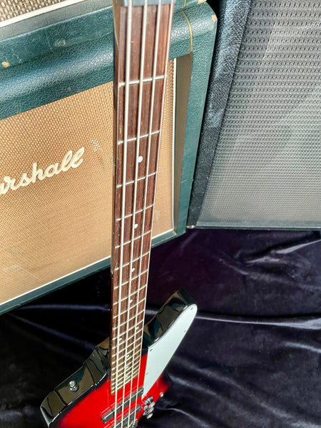 Ref.# 00398: This Tokai Love Rock Thunderbird Bass has a set neck, Rosewood fingerboard and two PAF Vintage MKII pickups. Tokai guitars are notoriously known for their superb quality, construction, great tone and a fair sticker price. This is a very wonderful bass. Not a high dollar piece, but a superb piece for the money. Actually, a super bass for the money! Not a lot of these floating around. It is in excellent condition! The frets and action are great. She weighs in at approx. 9 pounds and comes with a gig bag.